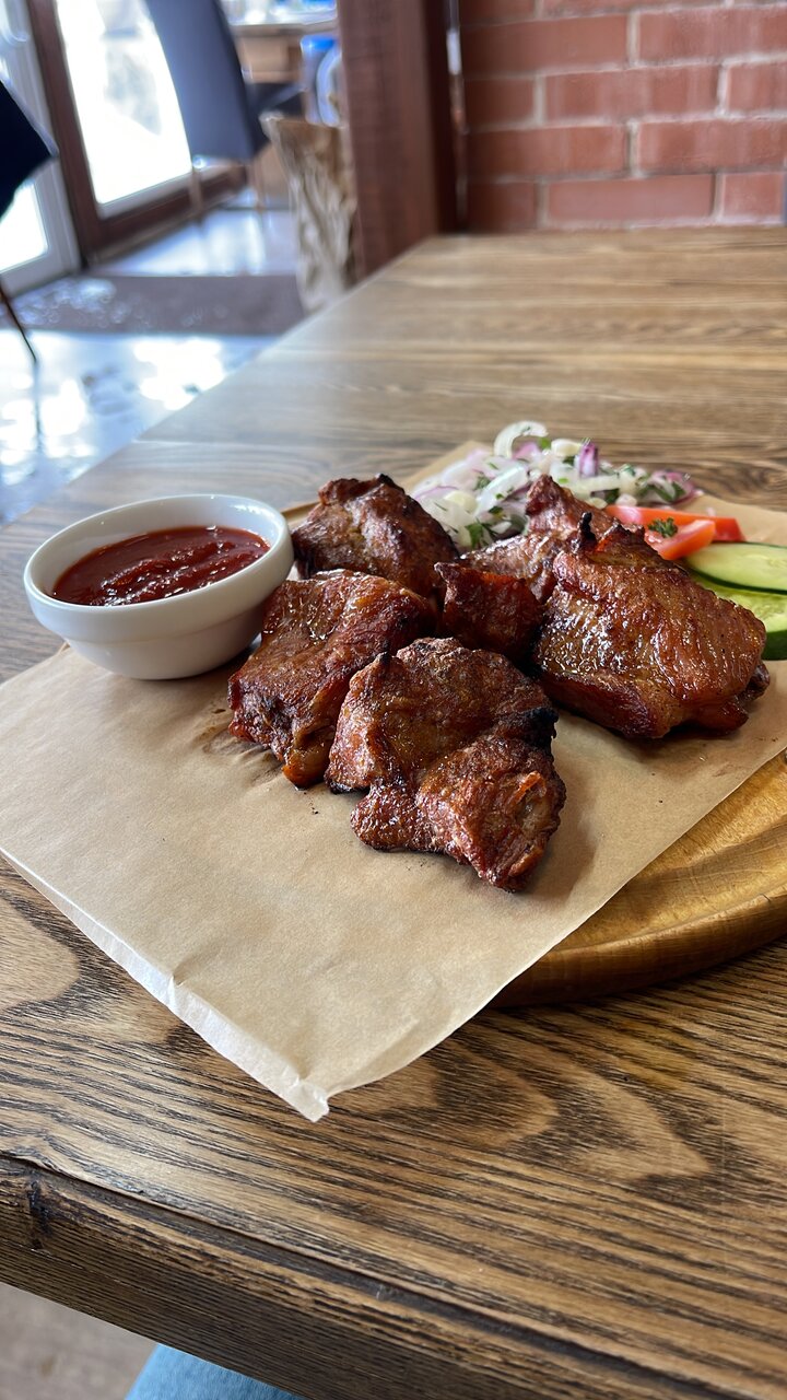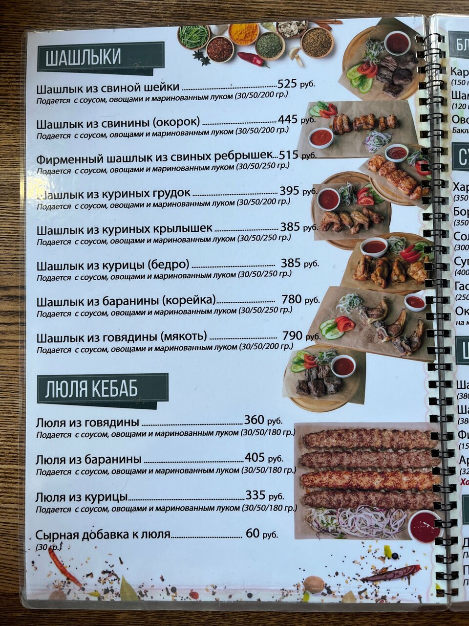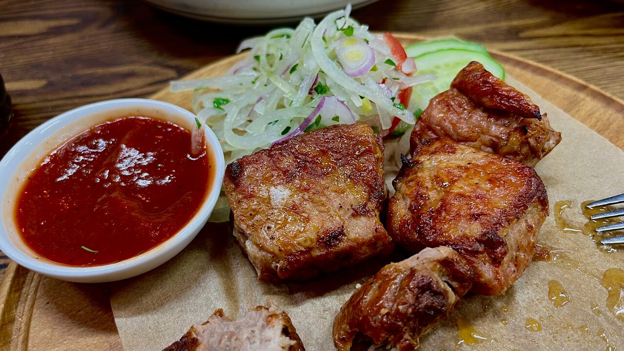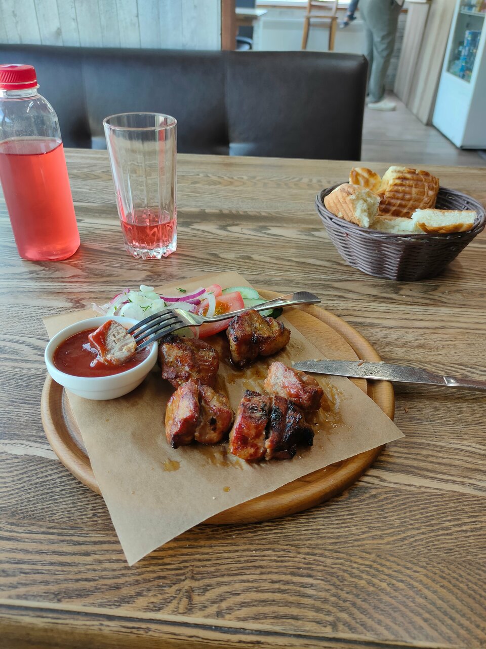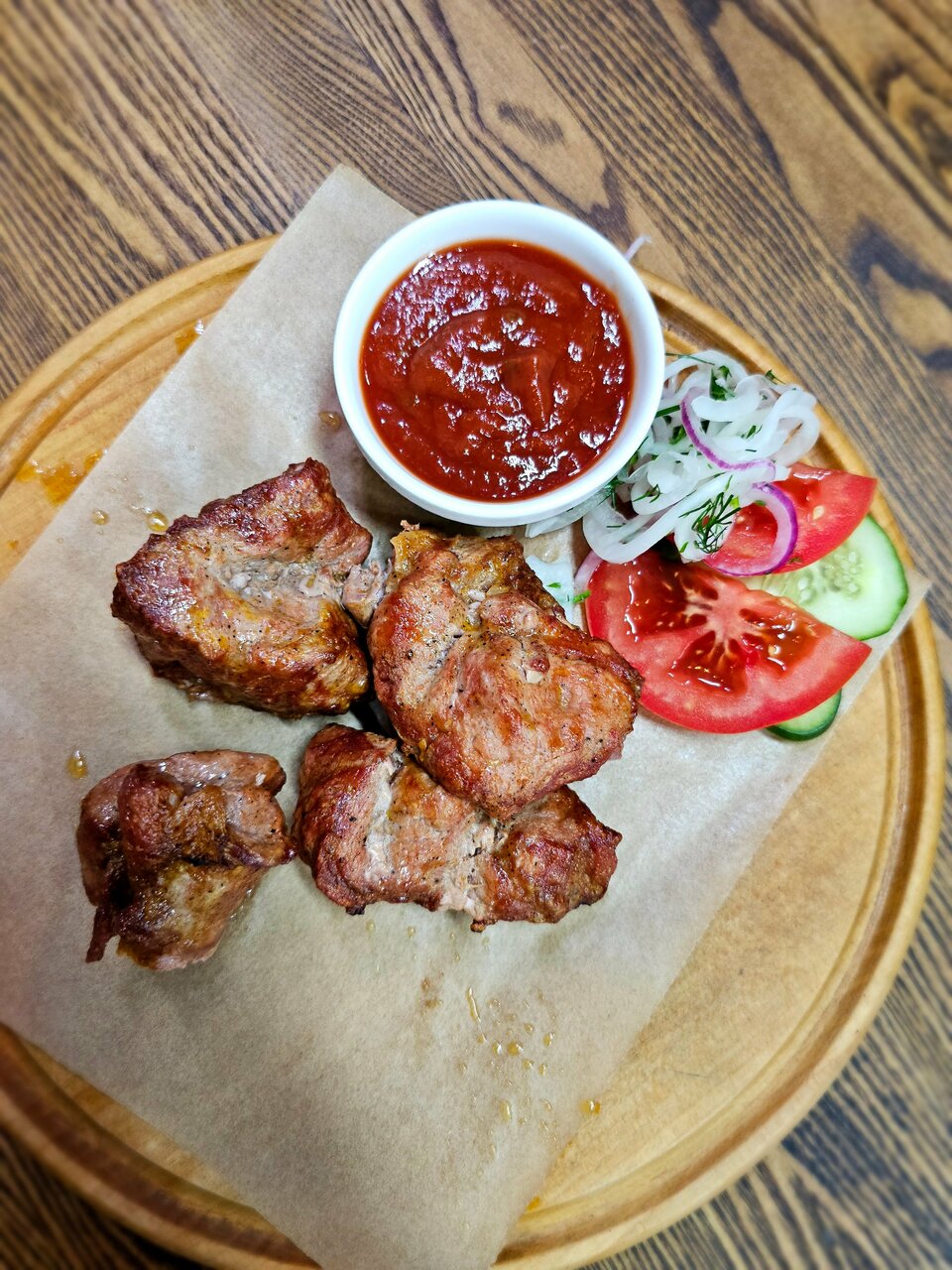 Заказывал не однократно. Всё отлично, оригинальные салаты, рекомендую. Шашлык пробовал разный, курица всегда сочная, ягнятина была тоже отличня, но попадались мелкие дробление кости, не очень приятно. Из свинины, карбонат суховат, шея отличная всегда.