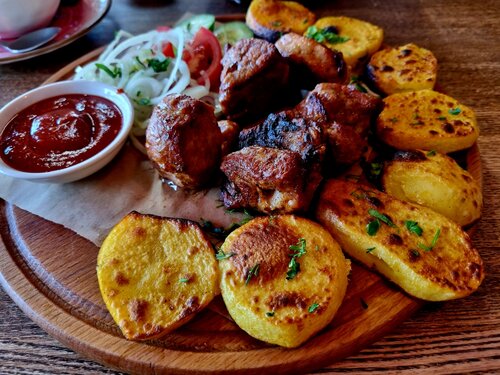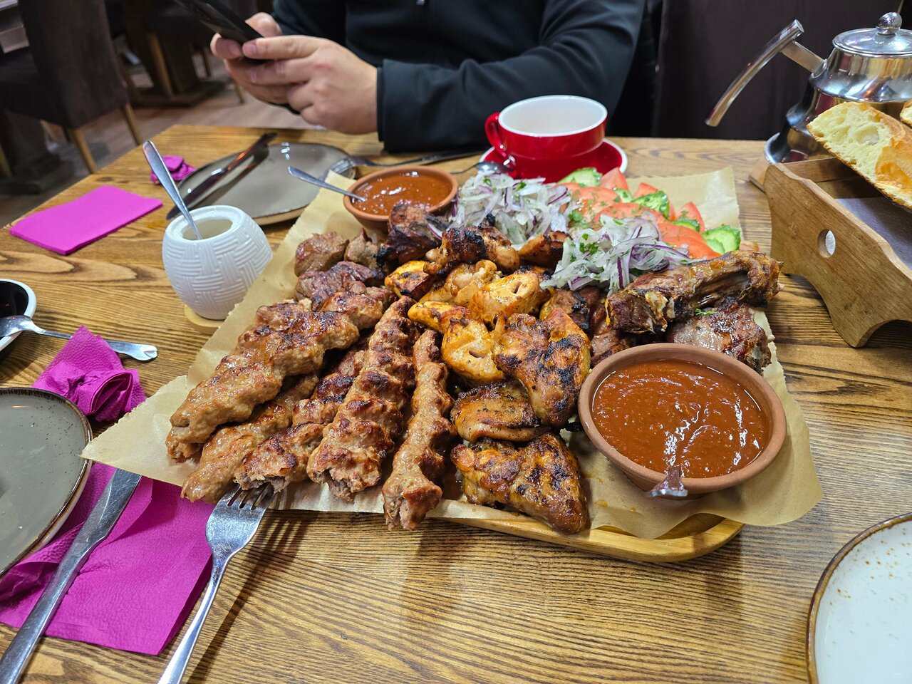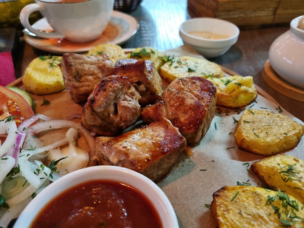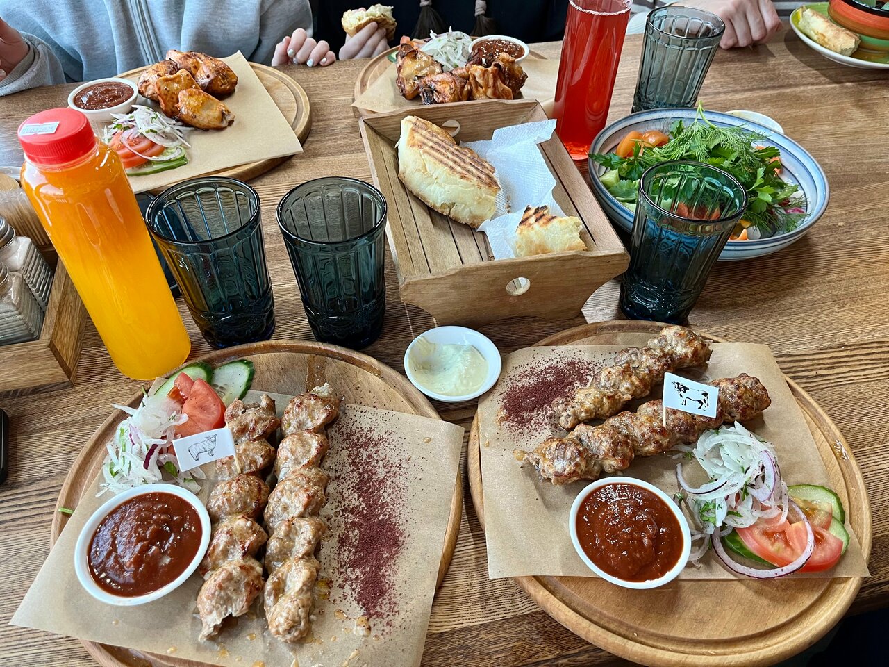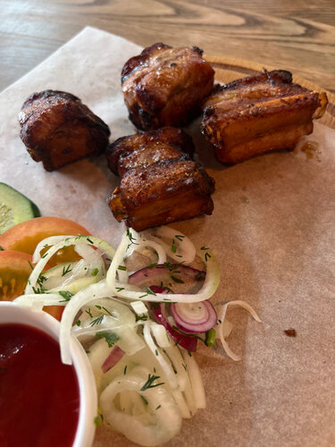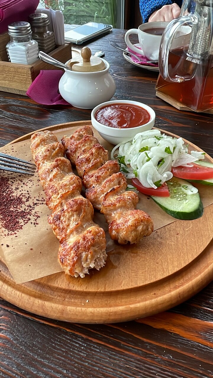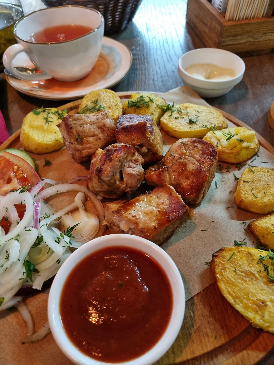 Заказывал не однократно. Всё отлично, оригинальные салаты, рекомендую. Шашлык пробовал разный, курица всегда сочная, ягнятина была тоже отличня, но попадались мелкие дробление кости, не очень приятно. Из свинины, карбонат суховат, шея отличная всегда.
